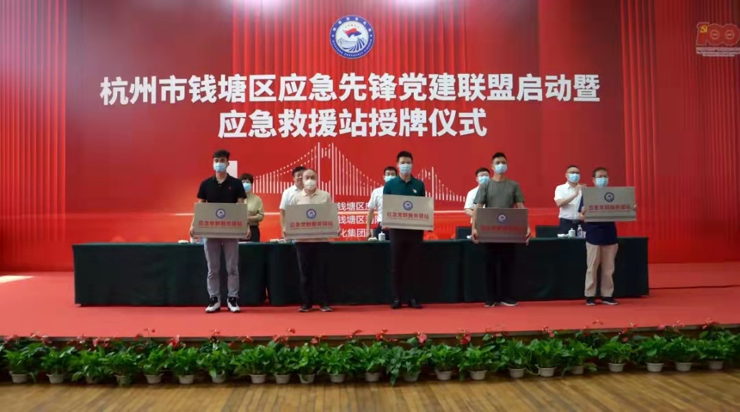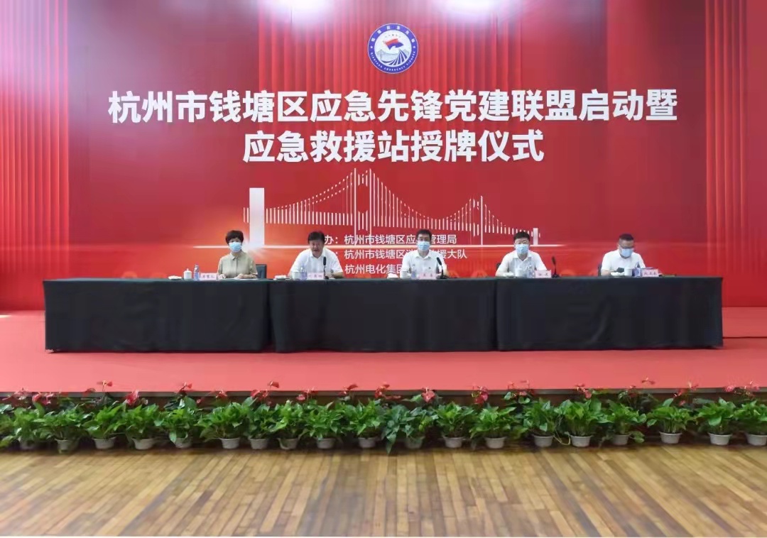 8月6日上午,杭州市錢塘區(qū)應(yīng)急先鋒黨建聯(lián)盟啟動暨應(yīng)急救援站授牌儀式在杭州電化集團有限公司活動中心舉行。儀式由錢塘區(qū)應(yīng)急管理局主辦,錢塘區(qū)消防救援大隊、杭州電化集團有限公司協(xié)辦。錢塘區(qū)區(qū)委常委、組織部長吳勇,副區(qū)長徐進,區(qū)委組織部副部長、兩新工委書記施正森,杭電化集團黨委書記、董事長、總裁蔣慧兒出席并在主席臺就坐。錢塘區(qū)應(yīng)急管理局局長葉蕭紅主持儀式。錢塘區(qū)相關(guān)機關(guān)單位、各街道,中國化學品安全協(xié)會、中國計量大學質(zhì)量與安全工程學院等聯(lián)盟指導單位以及150余家企業(yè)負責人和應(yīng)急救援站負責人共180余人參加儀式。